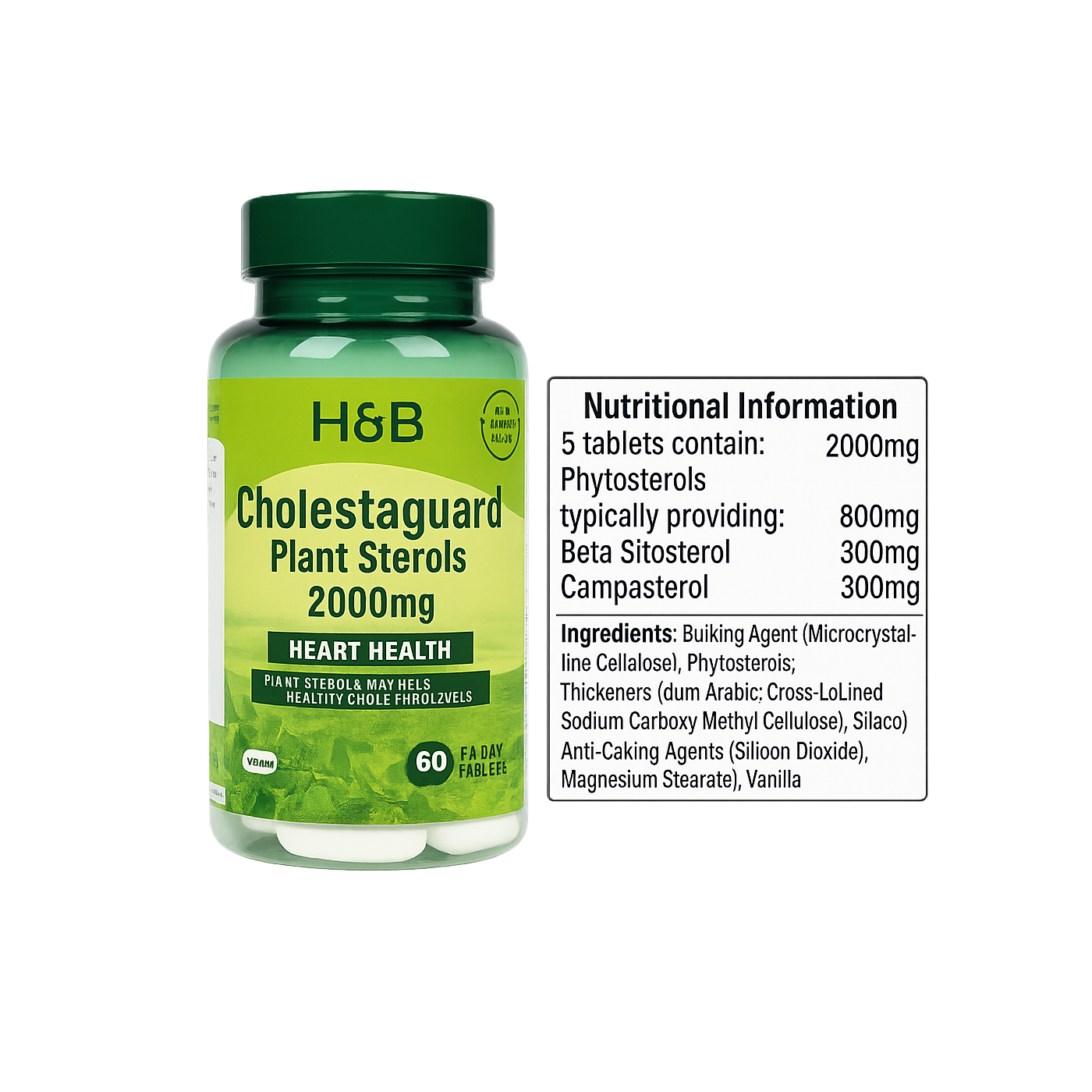 Ingredients: Plant sterols (providing 2,000 mg active sterols per 3 capsules), vegetarian capsule (HPMC).